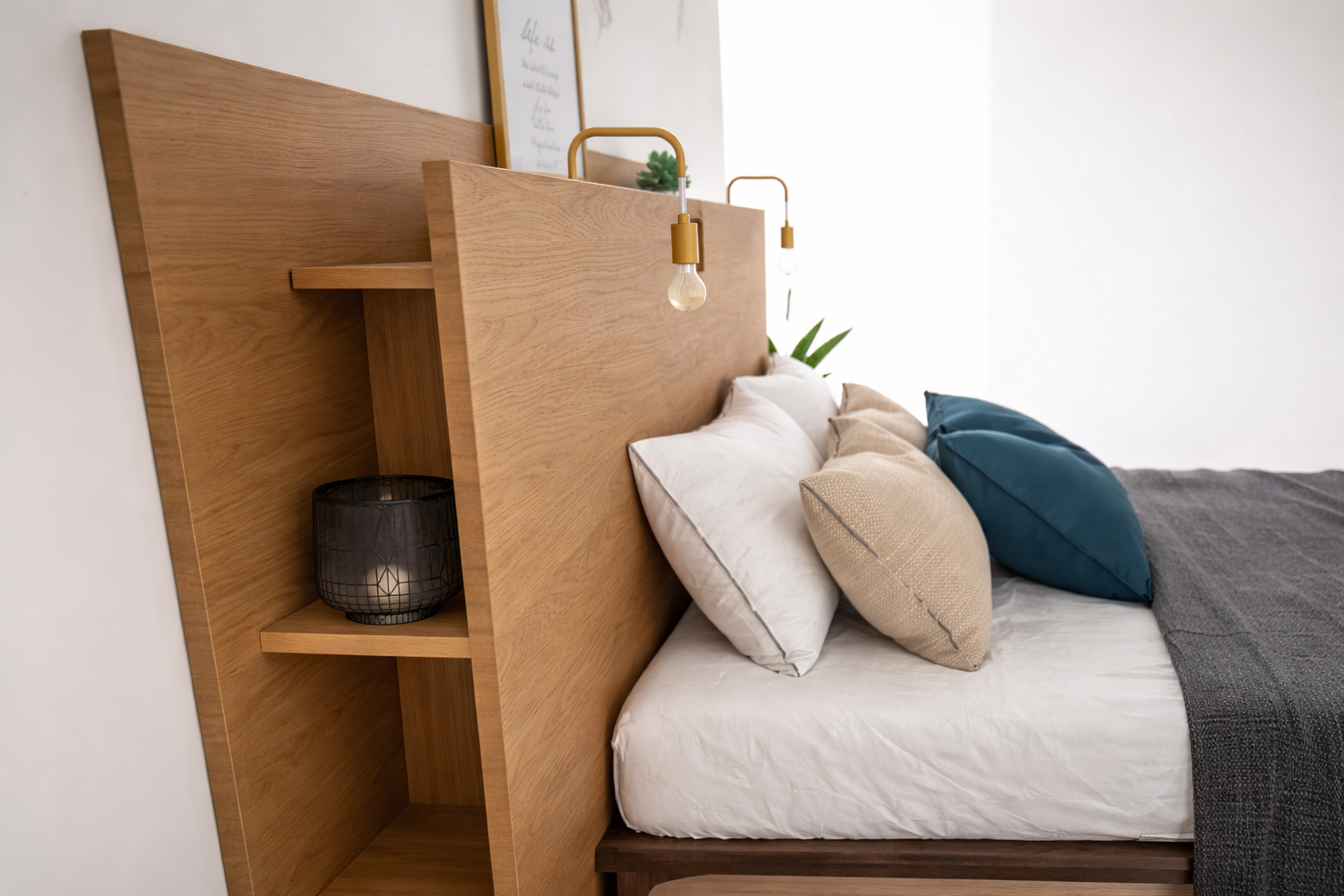 • Des étagères dissimulées fixées entre les deux panneaux pour accueillir vos livres et objets du quotidien à l’abri des regards mais toujours à portée de main.