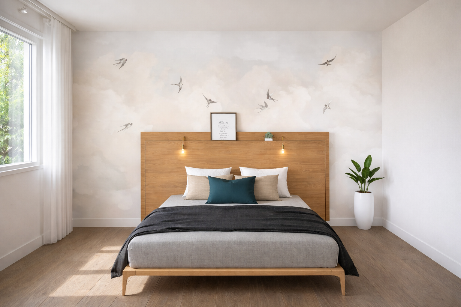 • Un grand panneau mural de 2,50 mètres de largeur et 1,20 mètre de hauteur formant la base de la structure et habillant le mur avec beaucoup d’élégance.