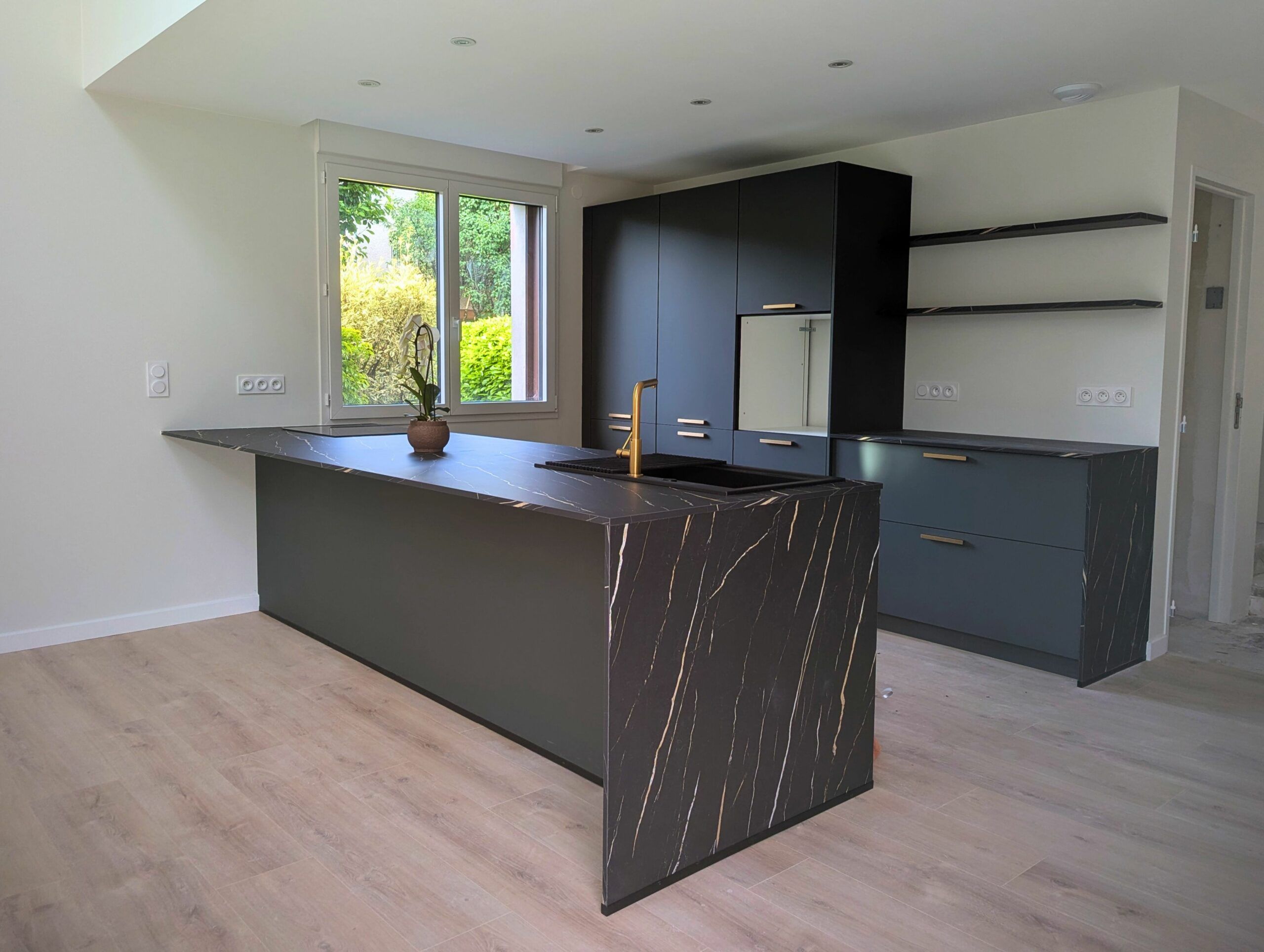 Vous entrez dans votre nouvelle cuisine. La lumière circule librement, chaque meuble est à sa place, chaque détail a été pensé pour vous. Vous passez la main sur un plan de travail en pierre naturelle, choisi ensemble. Tout est harmonieux. Les prises sont là où vous en avez besoin. Le four s’ouvre à bonne hauteur. Vous cuisinez sans contrainte, avec plaisir.
